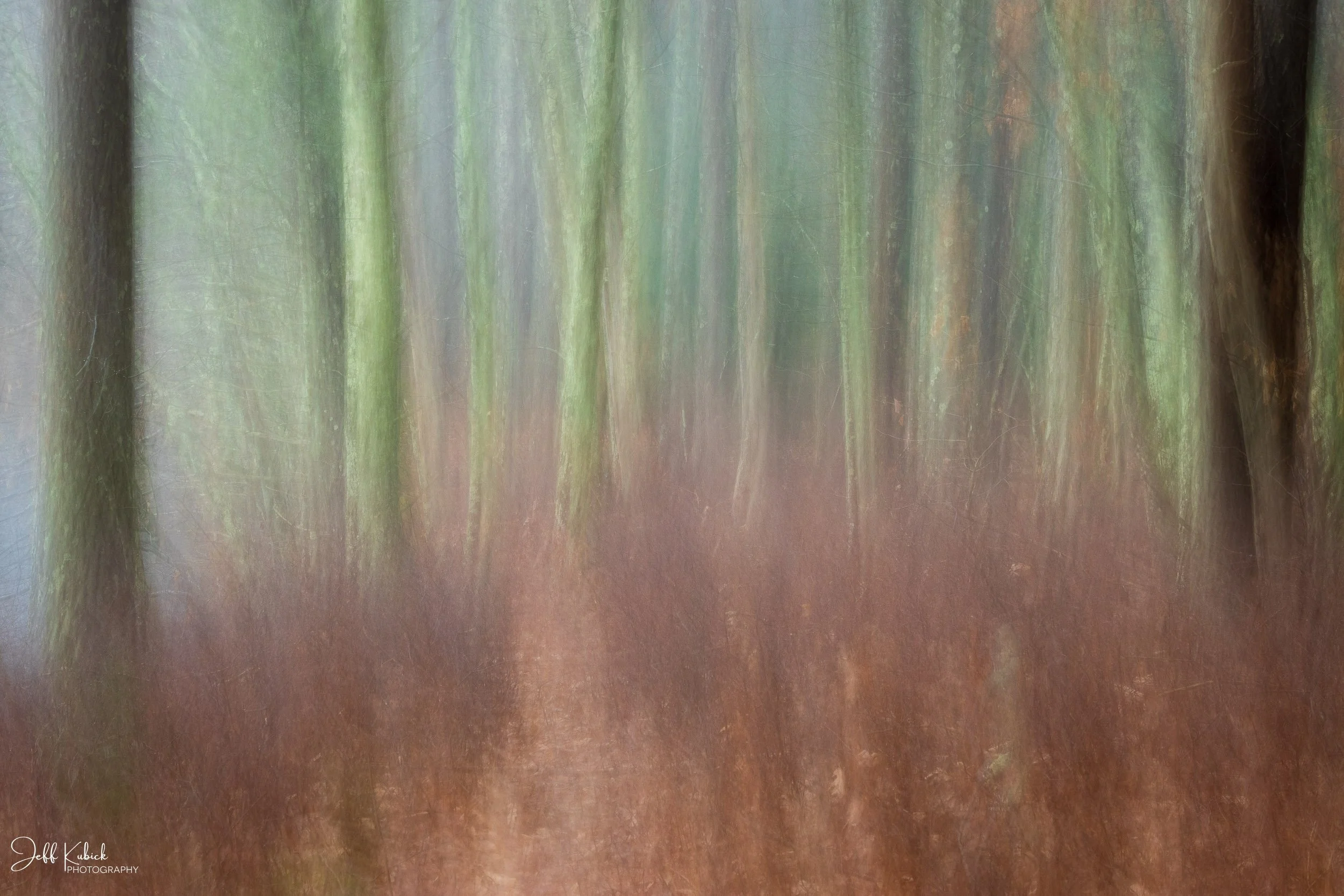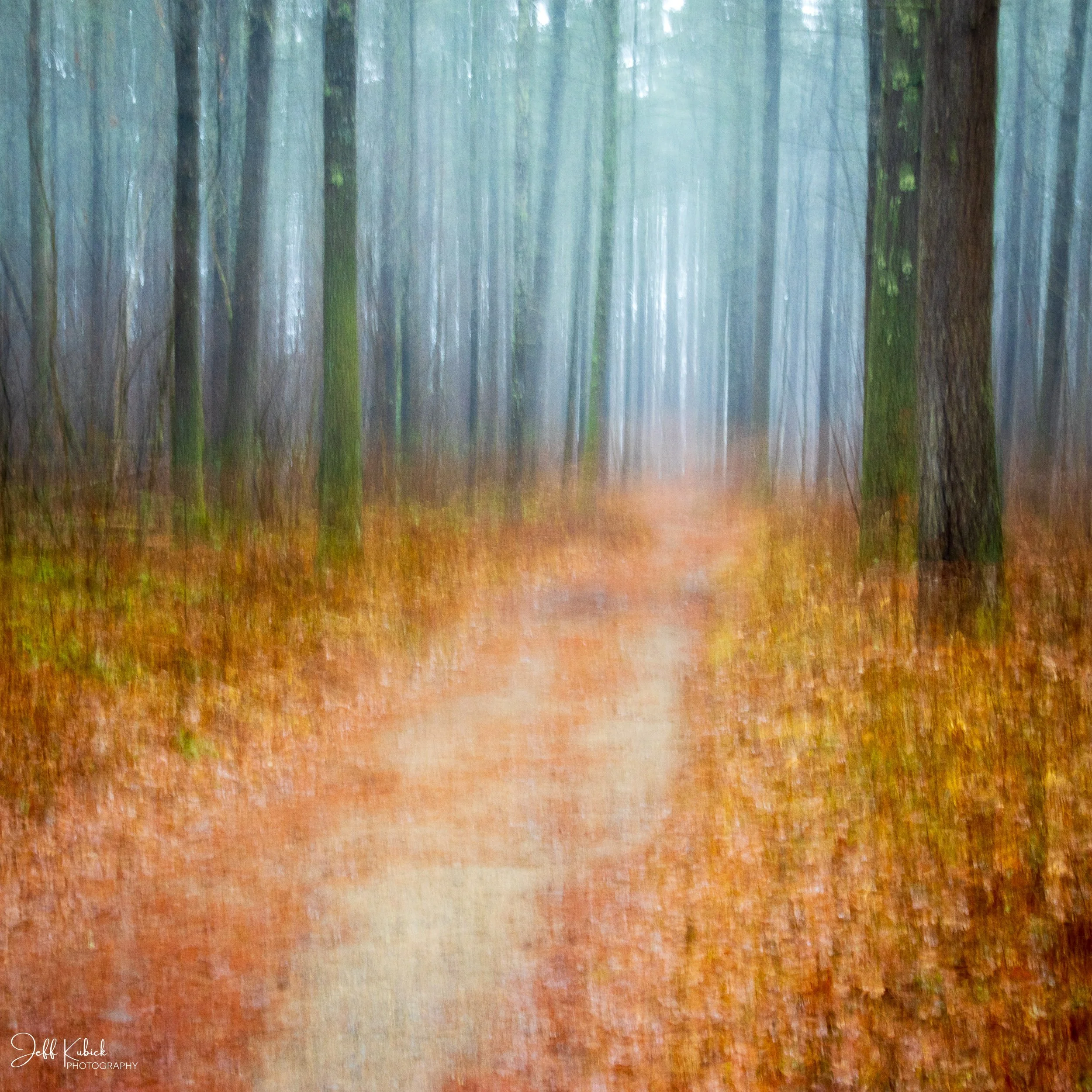 Walking Path thru Trees and Fog